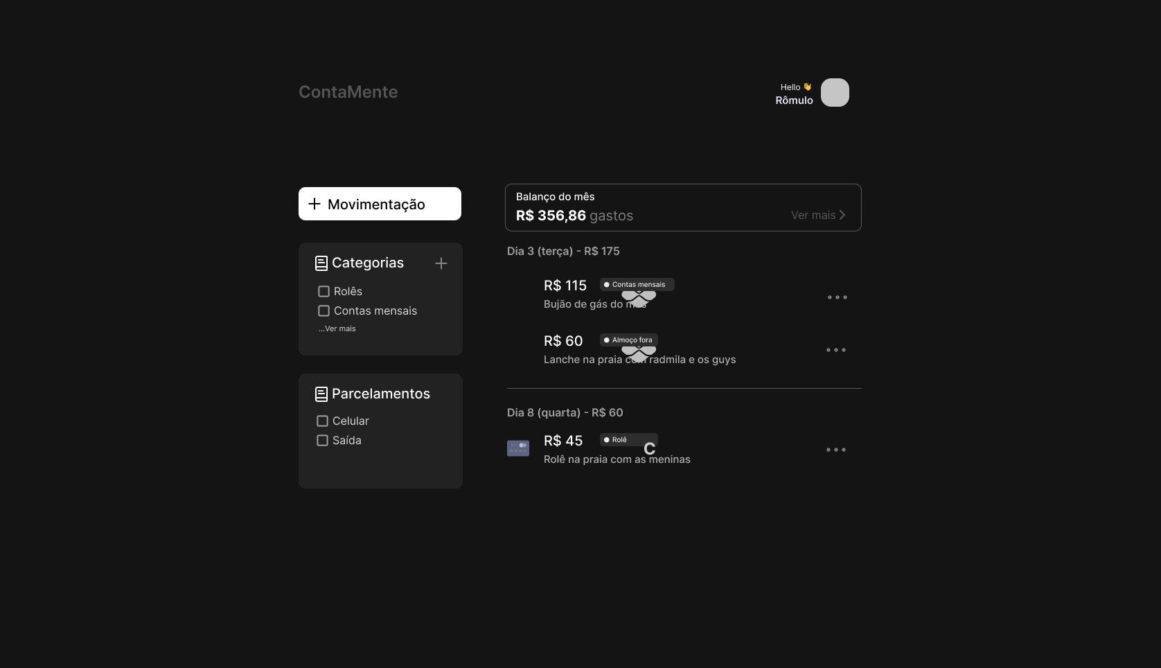 Um app de finanças baseado nas necessidades do dia a dia, em que atuo como frontend e designer.